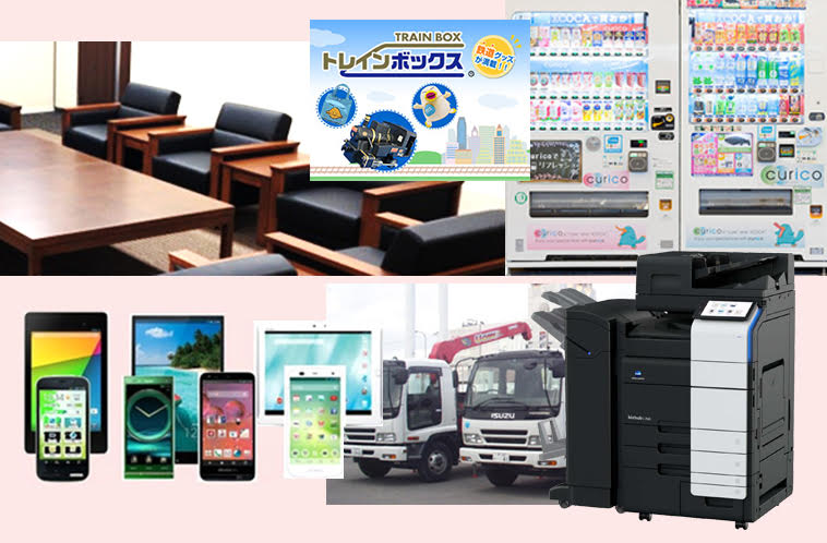 オフィス用インターネット通販サイトの運営、オフィスで使用する什器類、飲料・食品、鉄道をモチーフにしたグッズ、自動車など多岐にわたる商品を、販売またはリースにより提供しています。